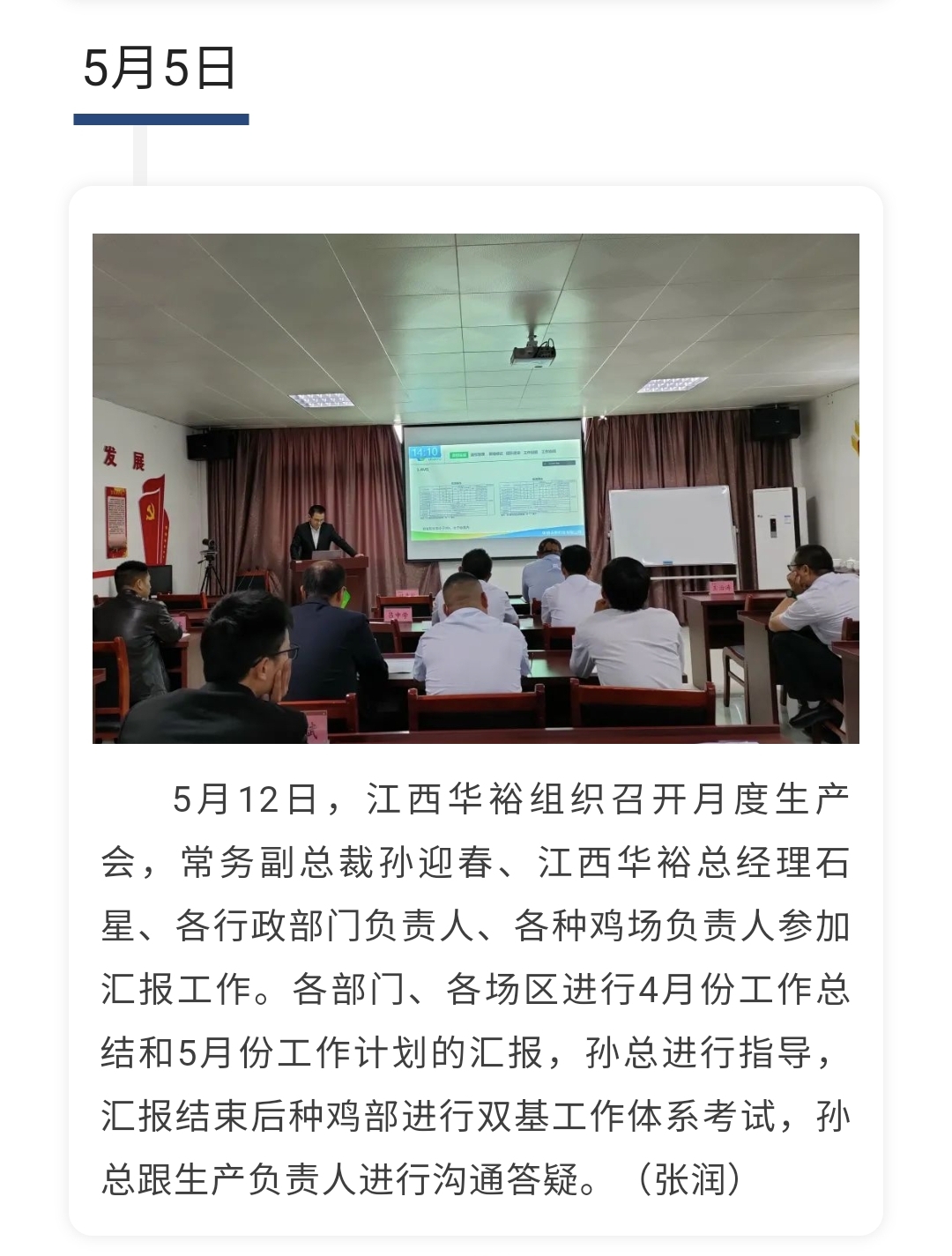 江西華裕組織召開月度生產會