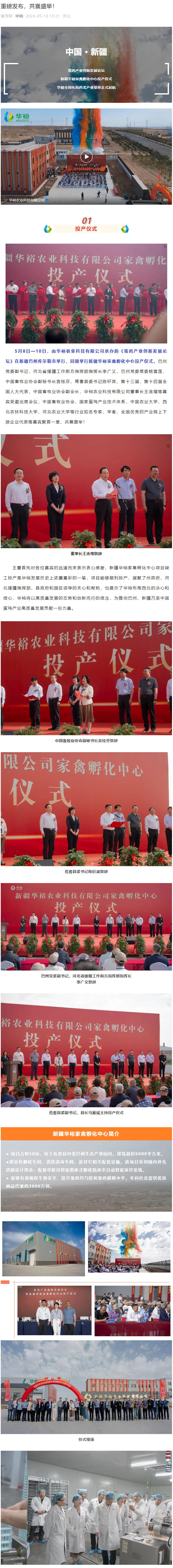 新疆華裕家禽孵化中心正式投產